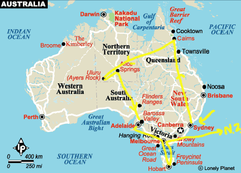 Sydney Cairns Uluru (Ayers Rock) Alice Springs Adelaide Kangaroo Island Tasmania Melbourne