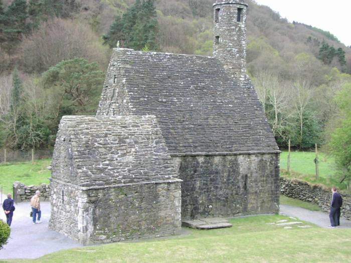 | The old monastery of Gelndalough, which St. Kevin founded in the 6th century, flourished despite intermittent plundering raids until early 17th century. | ![]() Stone-roofed monastery |