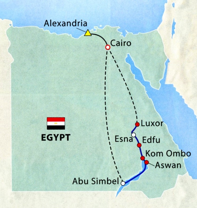 Cairo, Abu Simbel, Aswan, Kom Ombo, Edfu, and Luxor.