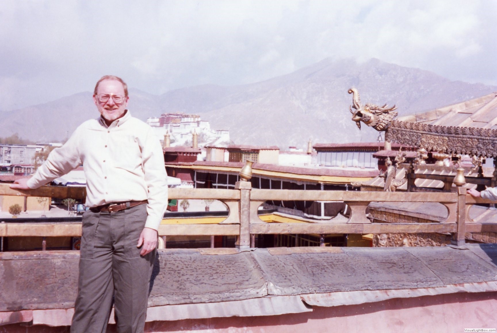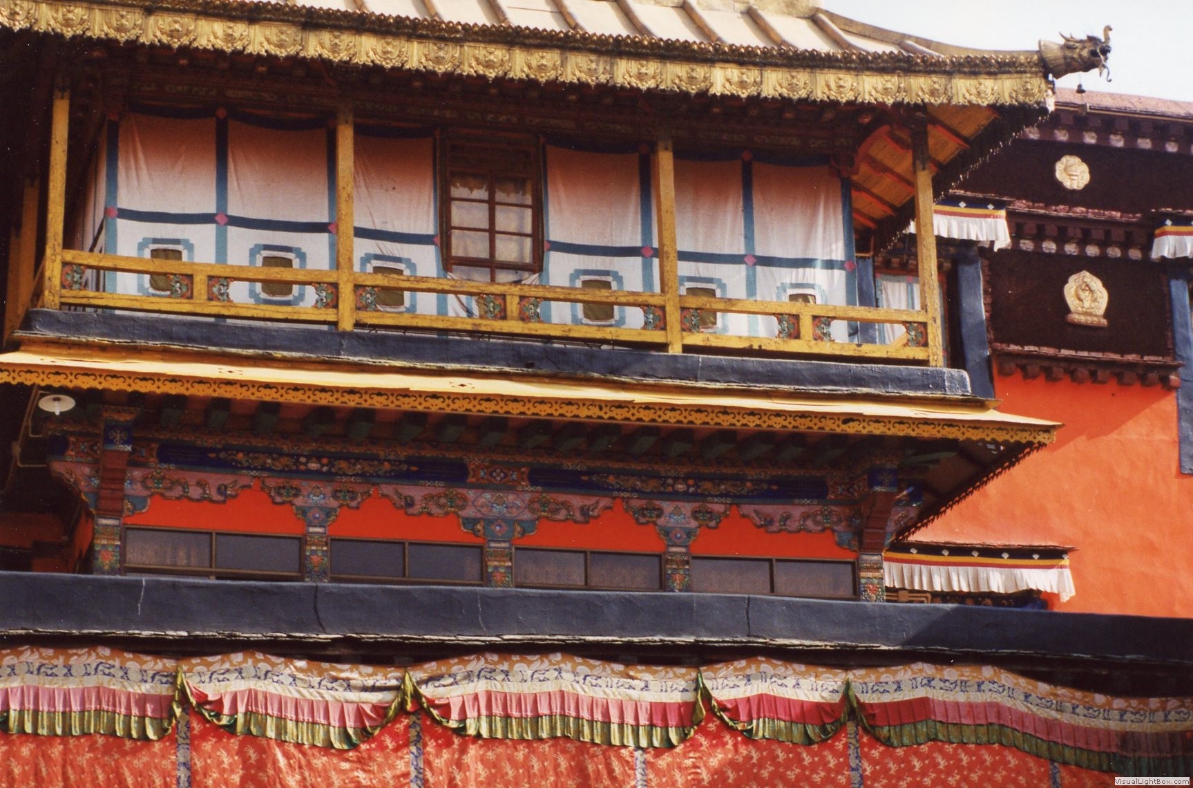 worshipers walking around the temple, clockwise, with a Prayer Wheel.