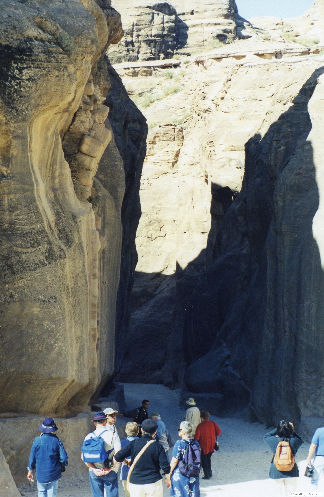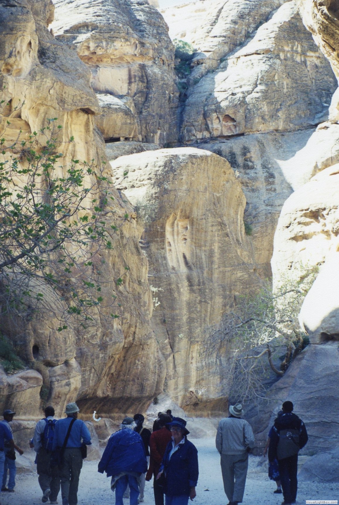 into Petra begins with a walk or a ride through the narrow passageway of