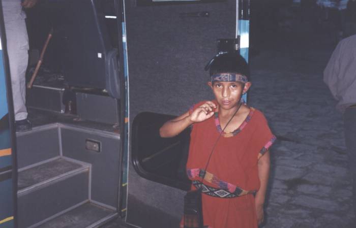 This lad (on foot) raced the bus down the mountain